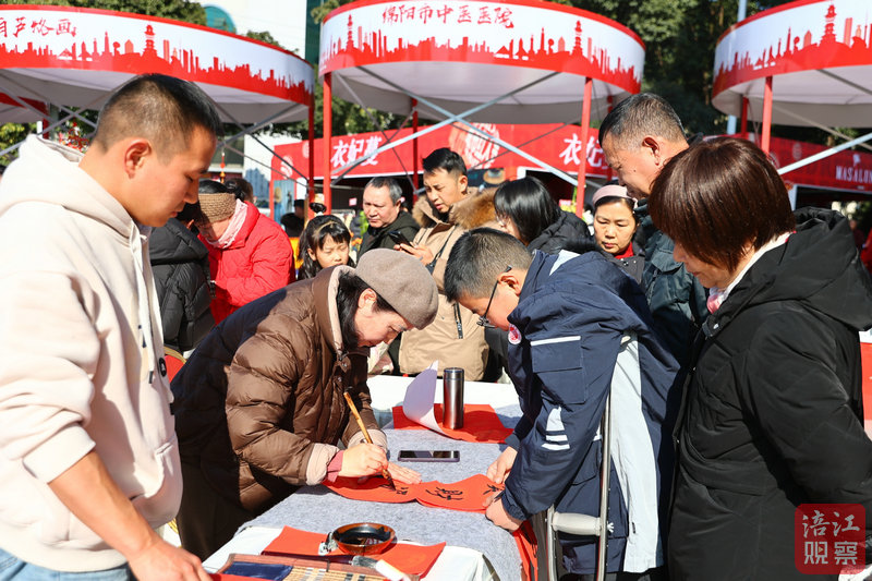 在書法展區(qū),專業(yè)老師揮毫潑墨,一個(gè)個(gè)寓意祥和的“福”字,一副副充滿喜氣的春聯(lián)躍然紙上;