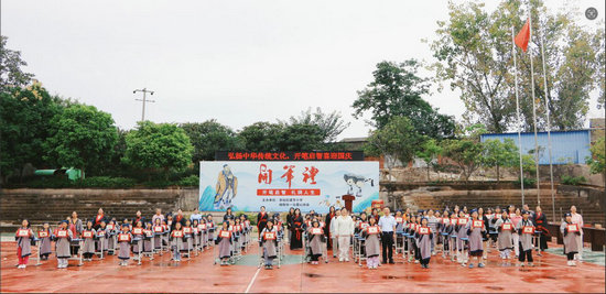 月29日上午,該校校園內(nèi)洋溢著濃厚的傳統(tǒng)文化氛圍。全校師生身著典雅的傳統(tǒng)漢服有序入場,青藍相間的衣袂在微風(fēng)中輕揚,映襯著孩子們純真的笑臉。他們眼中閃爍著好奇與期待,對即將開始的"開筆禮"儀式充滿了無限憧憬。原綿陽市文聯(lián)黨組書記、副主席、一元愛心協(xié)會督導(dǎo)陳豎琴,四川省扶貧基金會綿陽辦事處游仙聯(lián)絡(luò)處主任王宗華,四川省扶貧基金會綿陽辦事處游仙聯(lián)絡(luò)處副主任石曉玲,游仙區(qū)小枧鎮(zhèn)社會事務(wù)辦任曉玲等嘉賓出席本次活動。同時,各班家長代表也受邀出席,與師生們共同見證這一融合傳統(tǒng)文化與愛國教育的莊嚴(yán)時刻。嘉賓們的到來為活動增添了更多儀式感,也讓這場"開筆禮"更具教育意義。