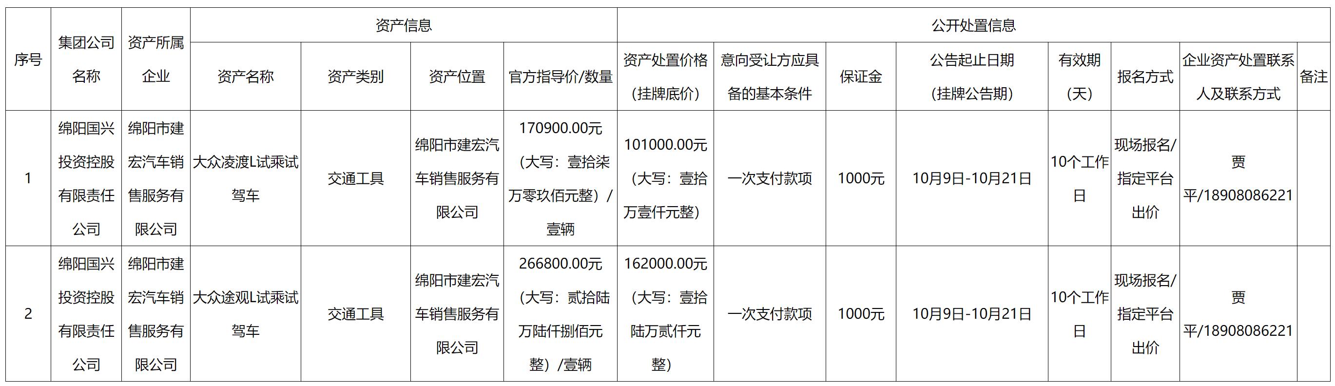 綿陽國(guó)興投資控股有限責(zé)任公司資產(chǎn)處置公告
