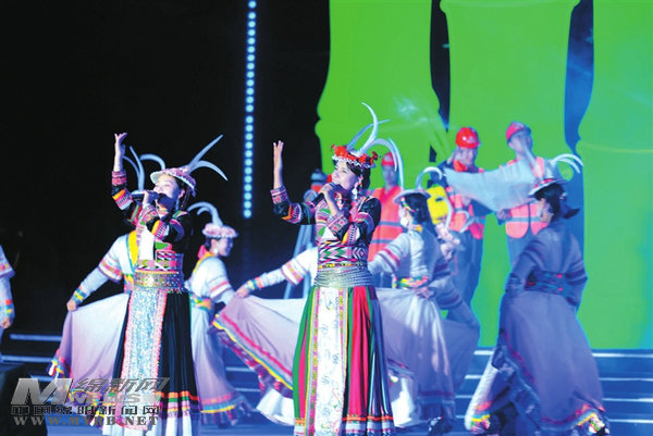 演員載歌載舞,唱出對家鄉(xiāng)的愛。
