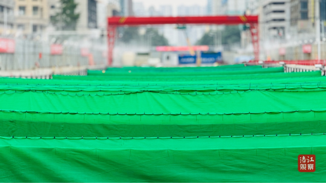 近日,綿陽(yáng)火車站站前廣場(chǎng)及周邊配套設(shè)施建設(shè)項(xiàng)目臨園路下穿隧道工程的核心環(huán)保設(shè)施——基坑智能防塵天幕系統(tǒng)上線, 一鍵開(kāi)啟“無(wú)塵模式”。相較于灑水、覆蓋等除塵方式,這樣主動(dòng)應(yīng)對(duì)塵土的方式,更加便捷有效可持續(xù)。