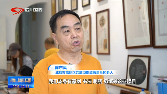 成都市高新區(qū)芳草街街道蓓蕾社區(qū)老人 陳東風:我們本身有篆刻、書法、刺繡、剪紙等這些項目,很受大家歡迎,這一次國慶(中秋)長假,每天的文創(chuàng)產品基本是全部賣光了。