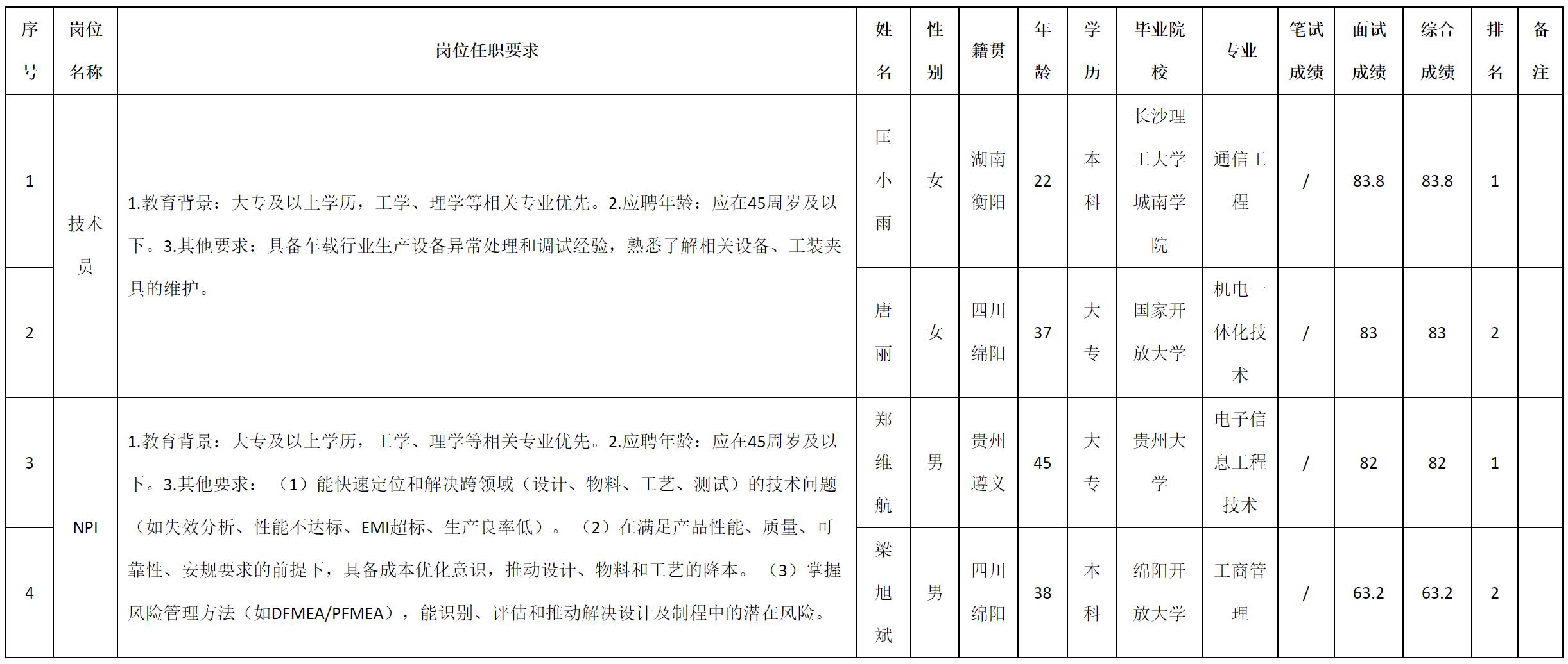 四川九州電子科技股份有限公司關(guān)于招聘技術(shù)員等崗位測試成績的公示