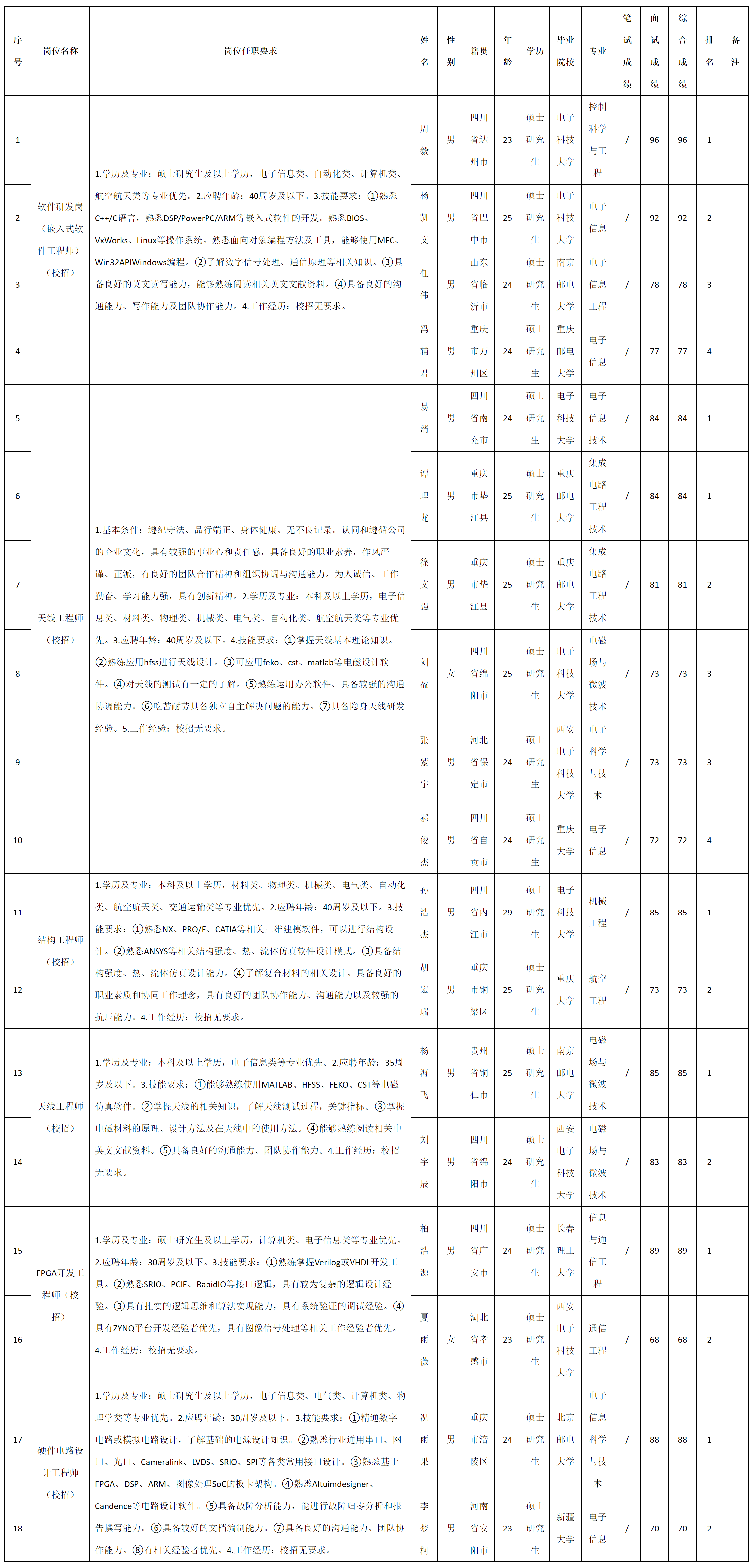 根據(jù)四川九洲電器集團有限責任公司發(fā)布的招聘公告及招聘相關規(guī)定,現(xiàn)將測試成績予以公示。