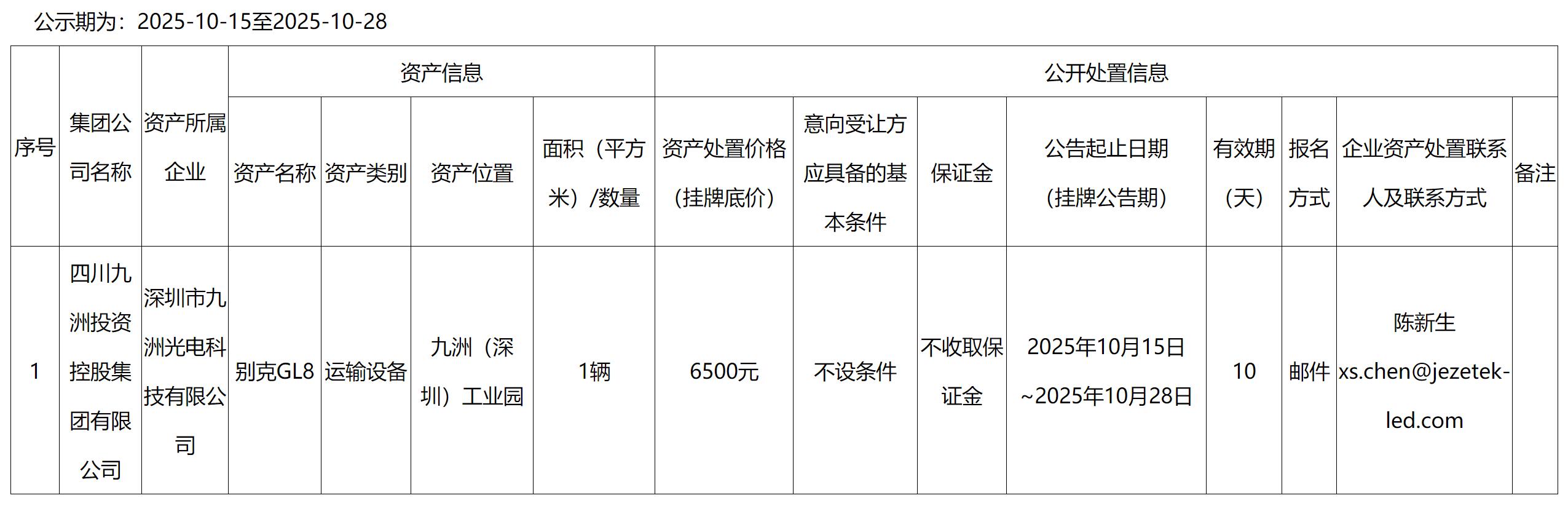 深圳市九洲光電科技有限公司車(chē)輛處置公告