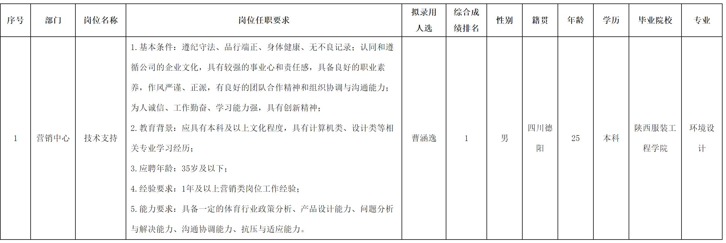 根據(jù)四川長(zhǎng)虹教育科技有限公司發(fā)布的招聘公告及招聘相關(guān)規(guī)定,經(jīng)面試等環(huán)節(jié),擬錄用曹涵逸同志到我公司工作,現(xiàn)予以公示,具體情況如下: