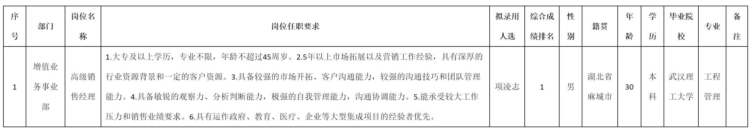 根據(jù)四川科瑞軟件有限責(zé)任公司發(fā)布的招聘公告及招聘相關(guān)規(guī)定,經(jīng)測試、考察、體檢等程序,擬錄用項凌志同志到四川科瑞軟件有限責(zé)任公司工作,現(xiàn)予以公示,具體情況如下: