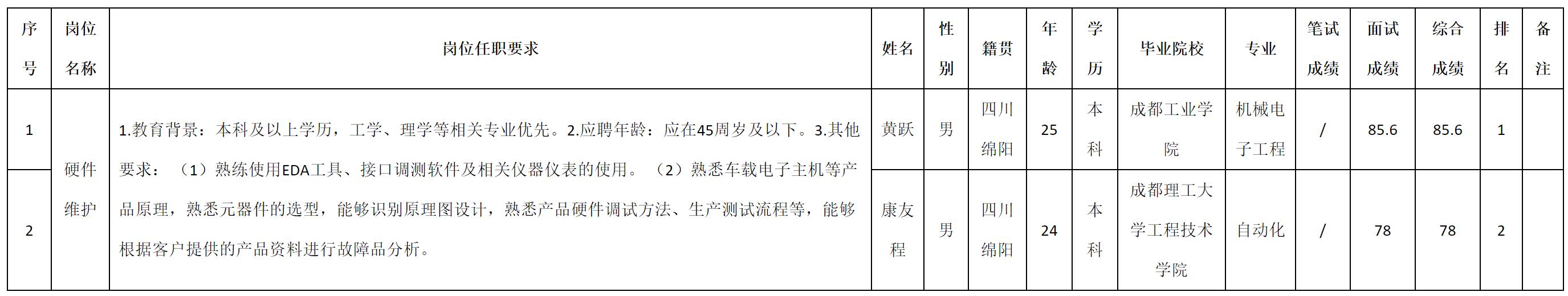 根據(jù)四川九州電子科技股份有限公司發(fā)布的招聘公告及招聘相關(guān)規(guī)定,現(xiàn)將測試成績予以公示。