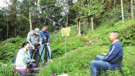 《兩山行》欄目組采訪關(guān)壩村生態(tài)巡護(hù)員。
