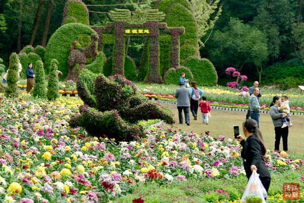 “安逸四川樂游綿陽”“嫘祖圣地”等造型各異、美輪美奐的菊藝展示,令人陶醉。各色花瓣在柔和的陽光下愈發(fā)絢麗多彩,散發(fā)出沁人心脾的菊香,讓觀展的市民游客流連忘返。