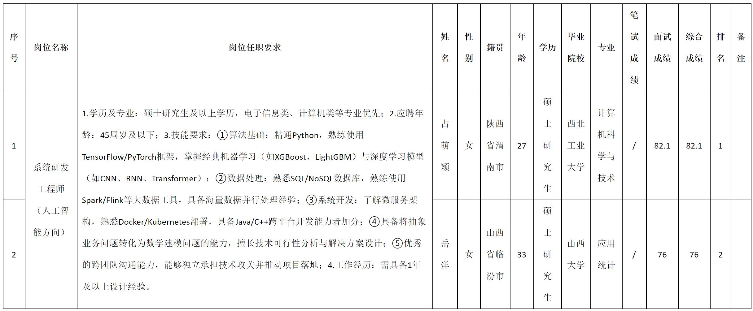 根據(jù)四川九洲電器集團(tuán)有限責(zé)任公司發(fā)布的招聘公告及招聘相關(guān)規(guī)定,現(xiàn)將測(cè)試成績(jī)予以公示。