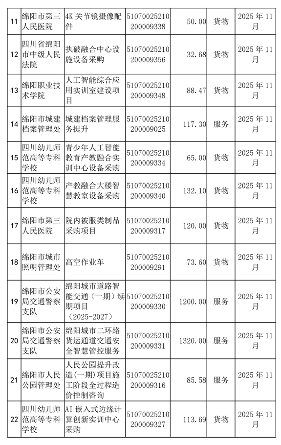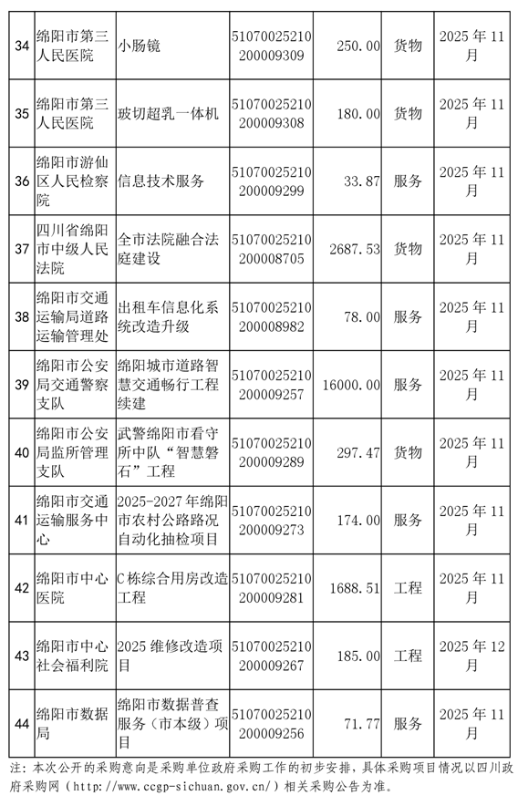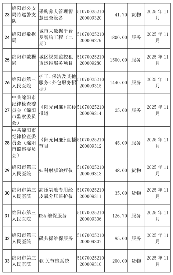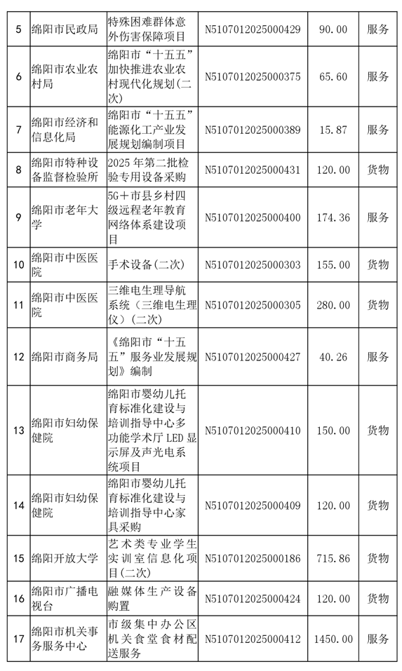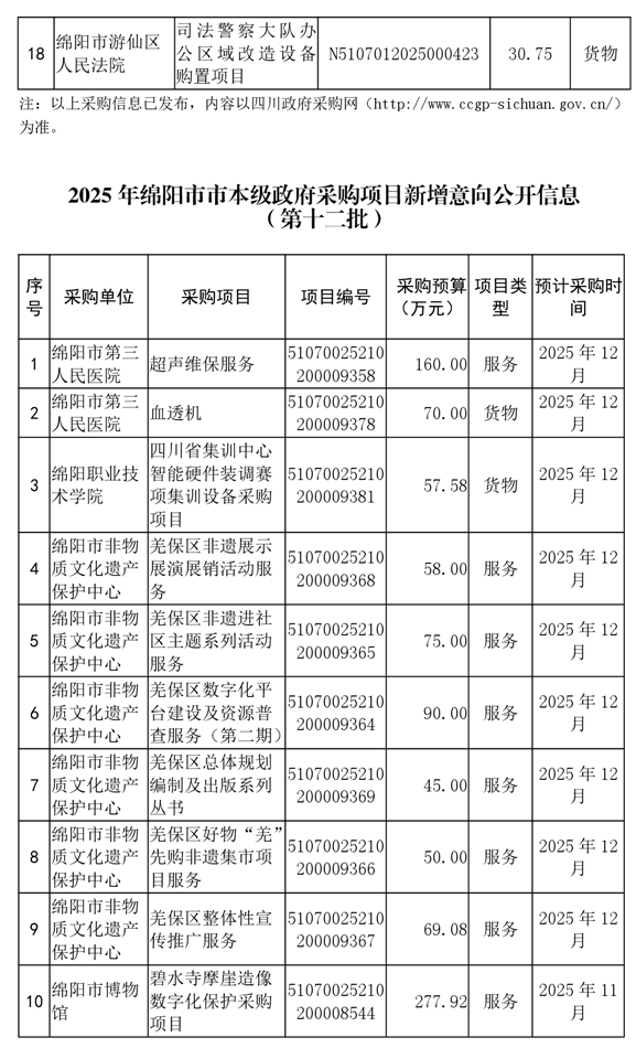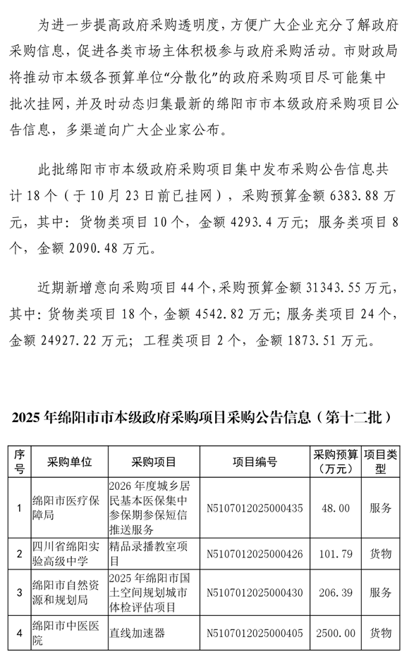 62個政府采購項目的“機會清單”出爐?。?025年第十二批)綿陽市市本級政府采購項目信息動態(tài)(2025年第十二波)
