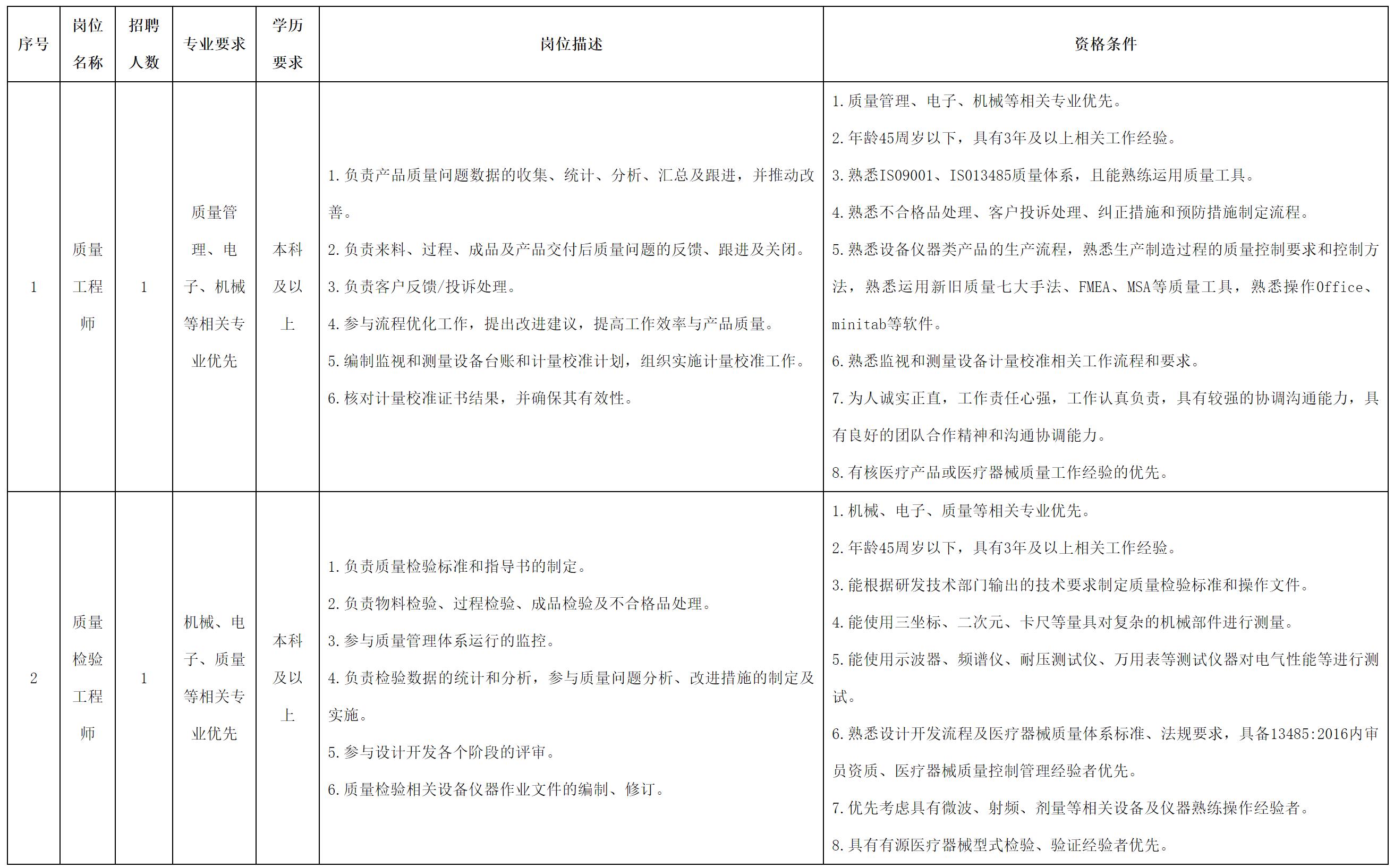 現(xiàn)因公司經(jīng)營發(fā)展需要,現(xiàn)面向長虹集團(tuán)內(nèi)、外部誠聘質(zhì)量工程師、質(zhì)量檢驗(yàn)工程師崗位人員,具體崗位招聘信息公告如下: