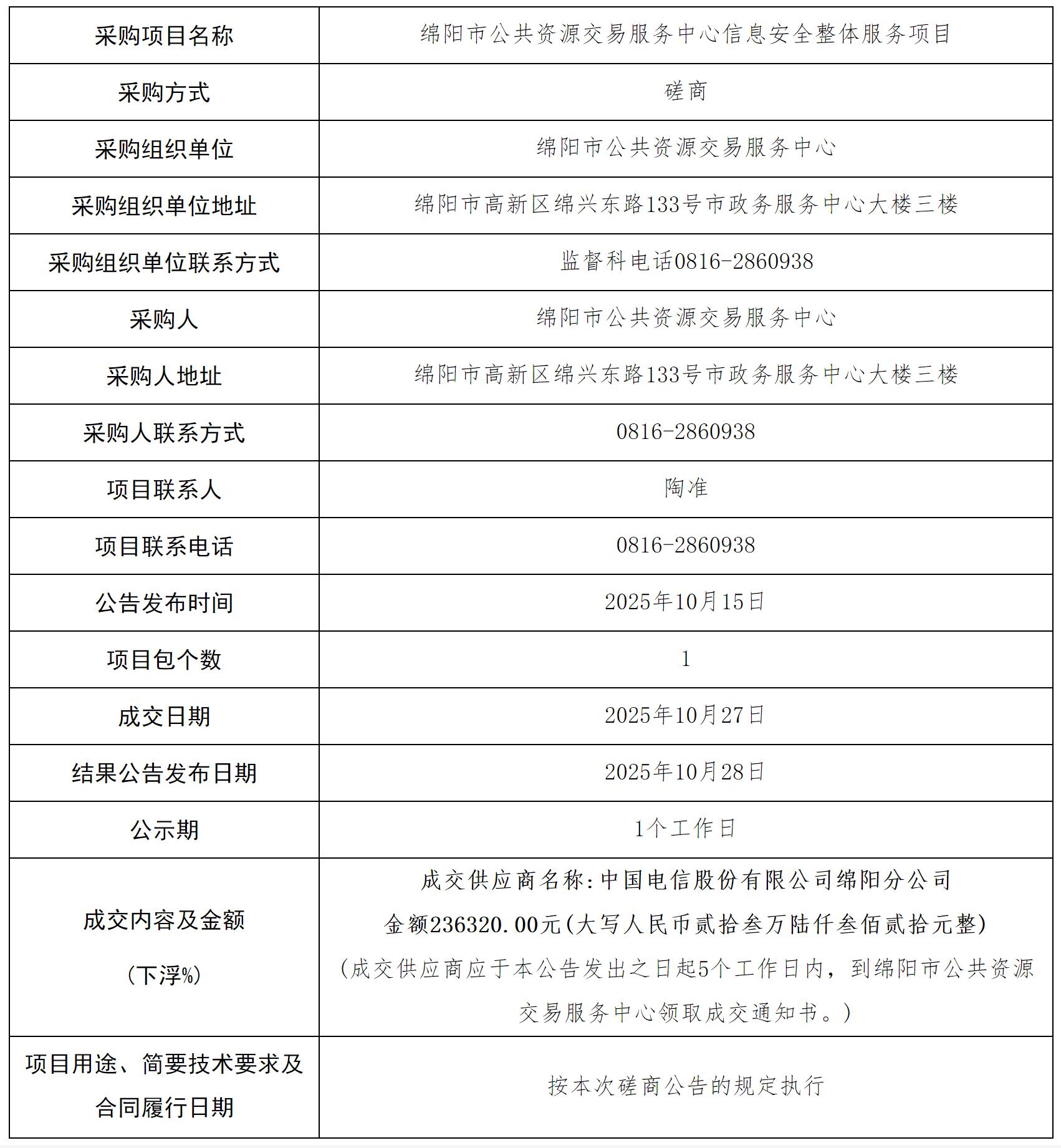 綿陽市公共資源交易服務中心關(guān)于“信息安全整體服務”項目采購結(jié)果的公告