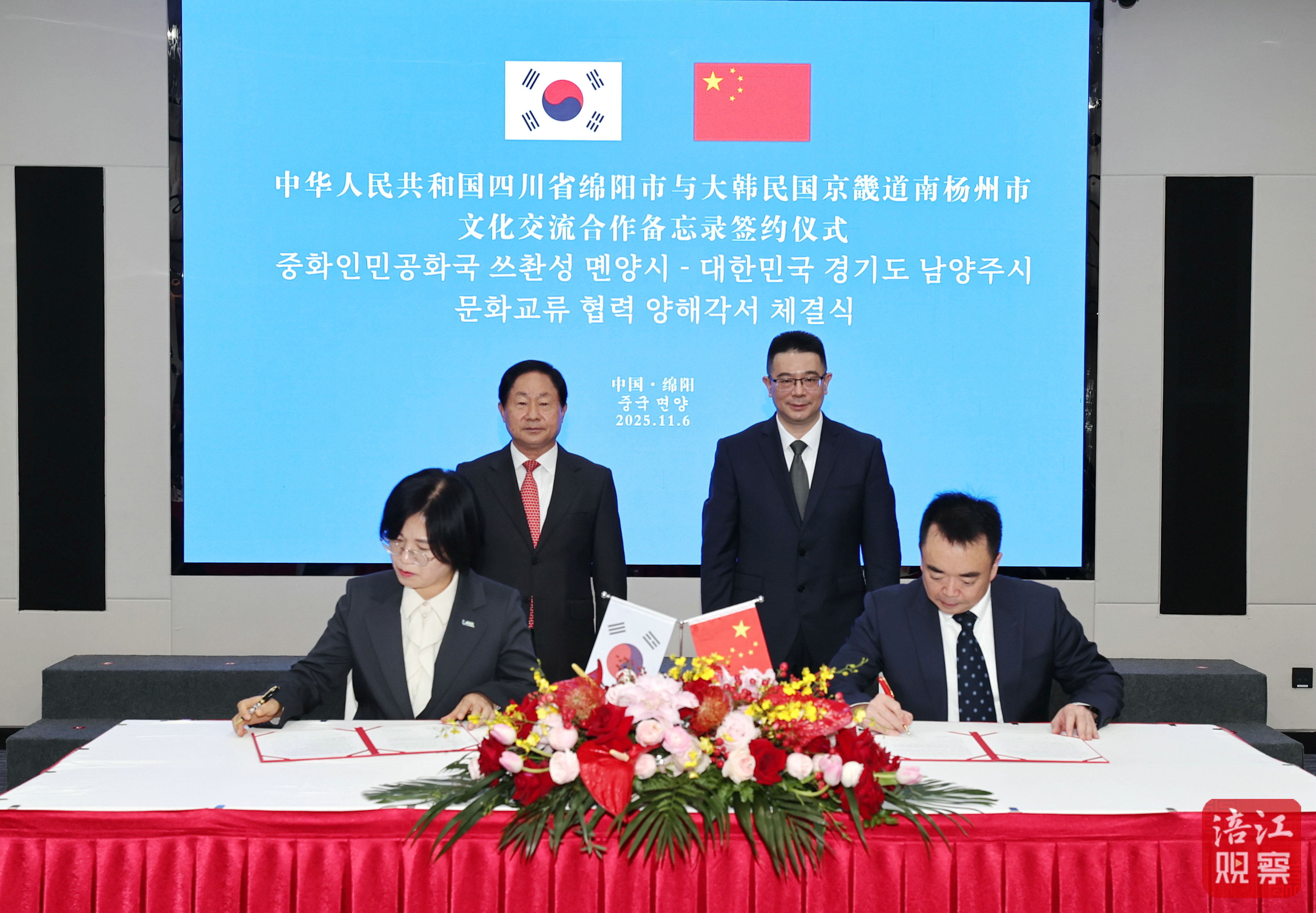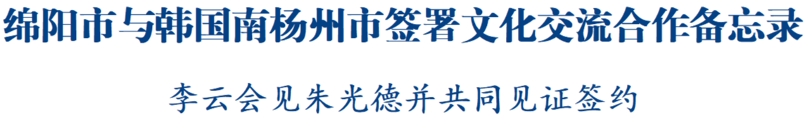 11月6日,綿陽市與韓國南楊州市簽署文化交流合作備忘錄。綿陽市委副書記、市長李云會(huì)見南楊州市市長朱光德,并共同見證簽約。