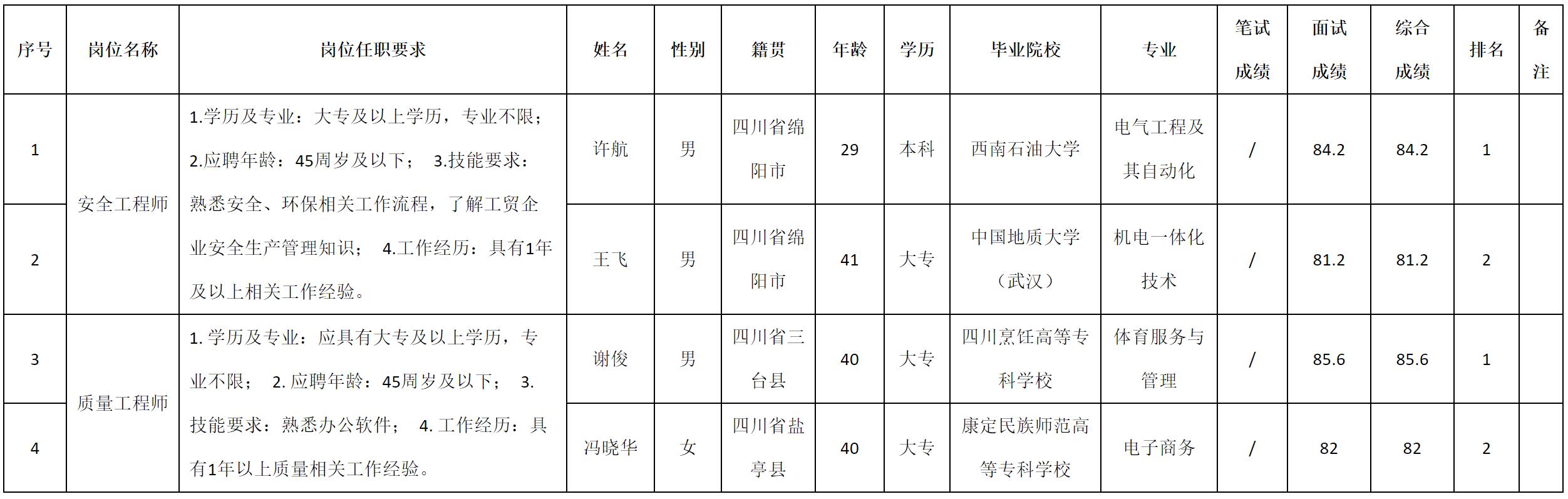 根據(jù)四川九州光電子技術(shù)有限公司發(fā)布的招聘公告及招聘相關(guān)規(guī)定,現(xiàn)將測(cè)試成績予以公示。