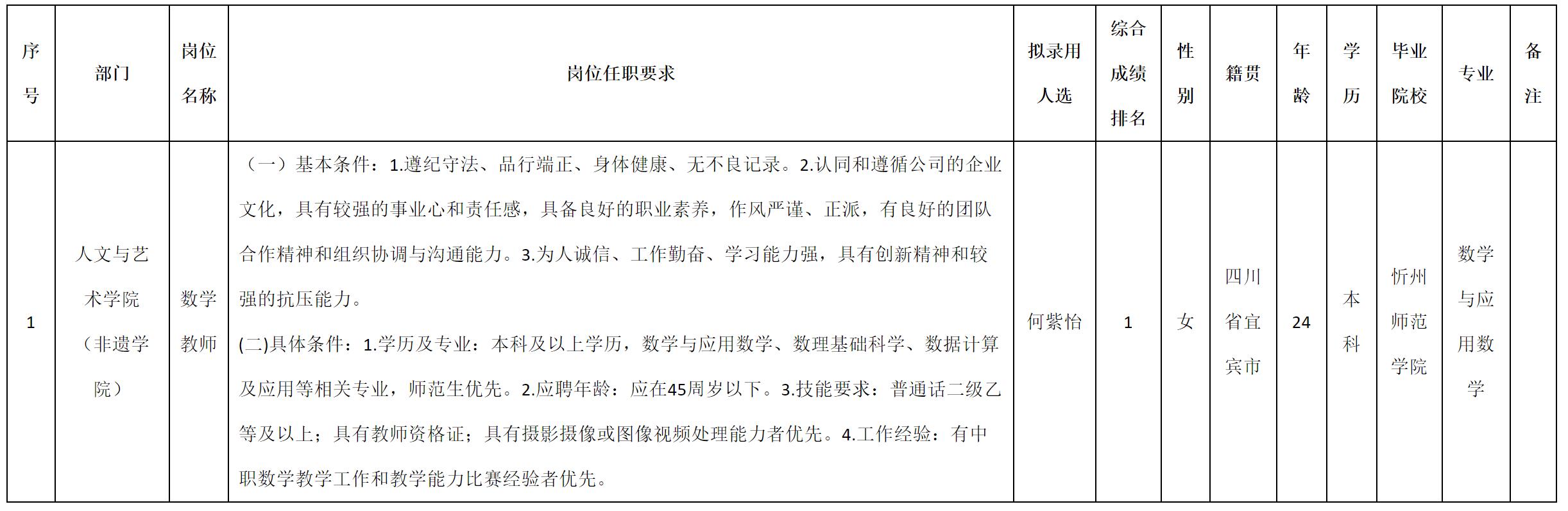 根據四川九洲教育投資管理有限公司發(fā)布的招聘公告及招聘相關規(guī)定,經測試、考察、體檢等程序,擬錄用何紫怡同志到四川九洲教育投資管理有限公司工作,現予以公示,具體情況如下: