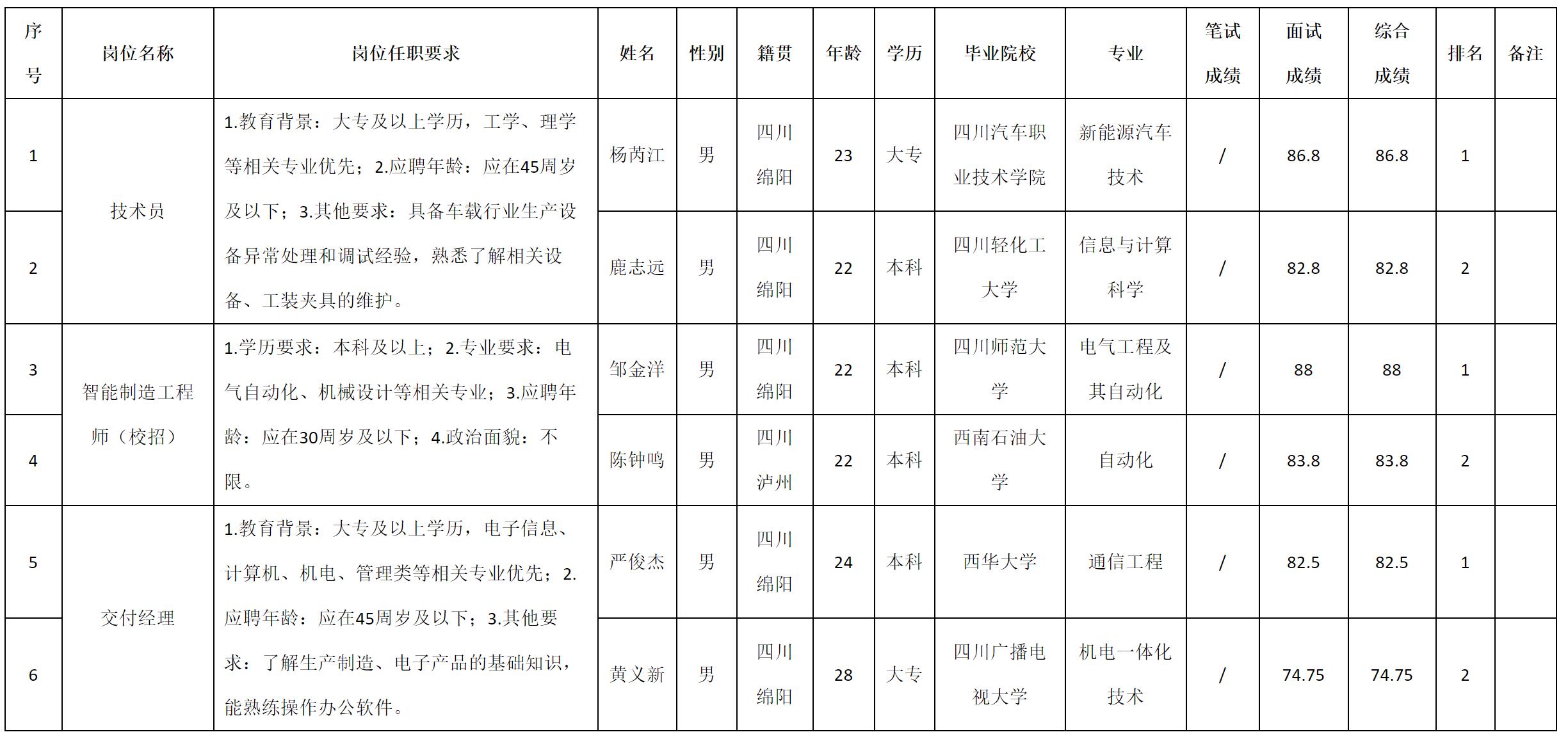 根據(jù)四川九州電子科技股份有限公司發(fā)布的招聘公告及招聘相關規(guī)定,現(xiàn)將測試成績予以公示。