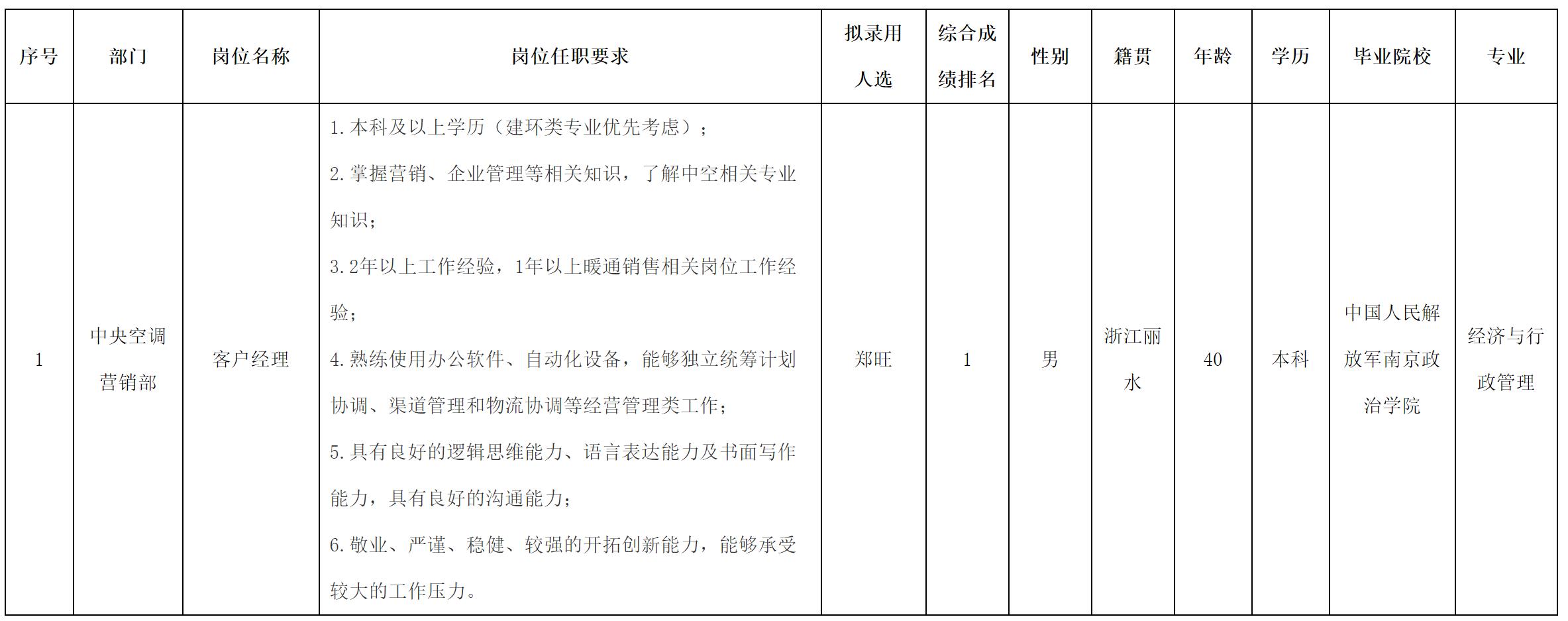 根據(jù)四川長虹空調(diào)有限公司發(fā)布的招聘公告及招聘相關(guān)規(guī)定,經(jīng)面試,擬錄用鄭旺到長虹空調(diào)工作,現(xiàn)予以公示,具體情況如下: