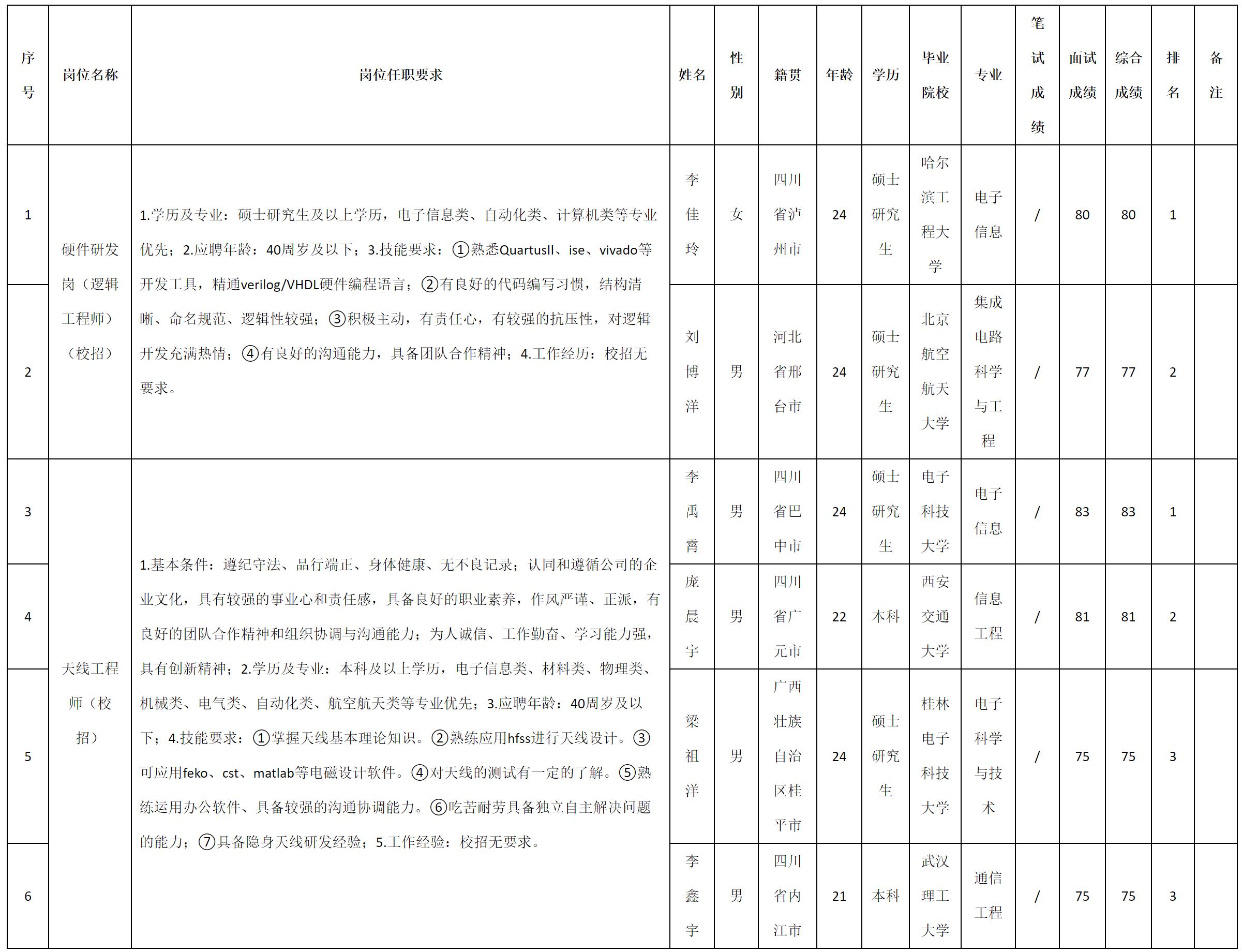 根據(jù)四川九洲電器集團有限責任公司發(fā)布的招聘公告及招聘相關(guān)規(guī)定,現(xiàn)將測試成績予以公示。