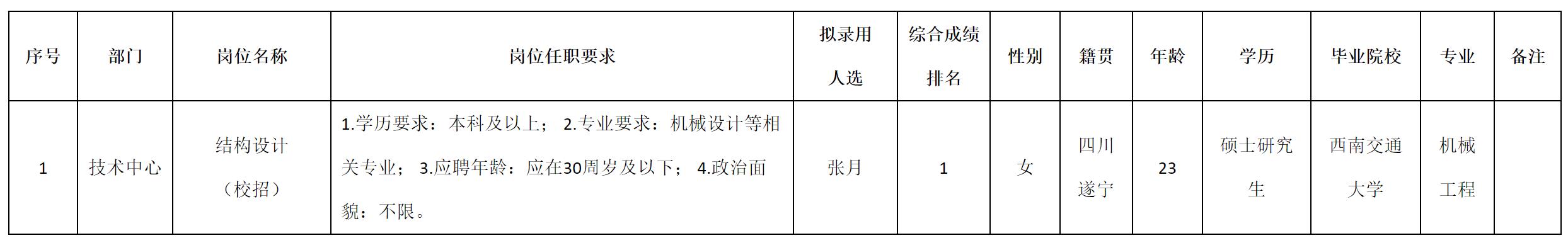 根據(jù)四川九州電子科技股份有限公司發(fā)布的招聘公告及招聘相關(guān)規(guī)定,經(jīng)測試、考察、體檢等程序,擬錄用張?jiān)峦镜剿拇ň胖蓦娮涌萍脊煞萦邢薰竟ぷ?,現(xiàn)予以公示,具體情況如下: