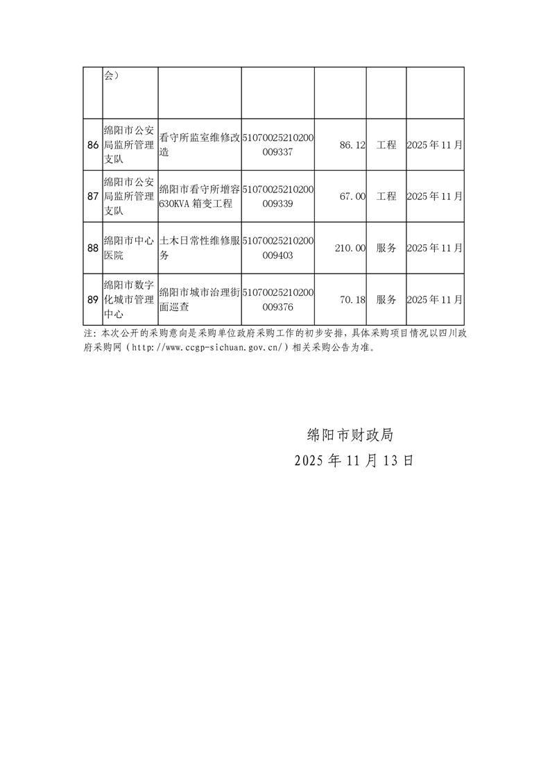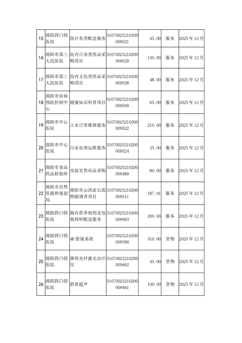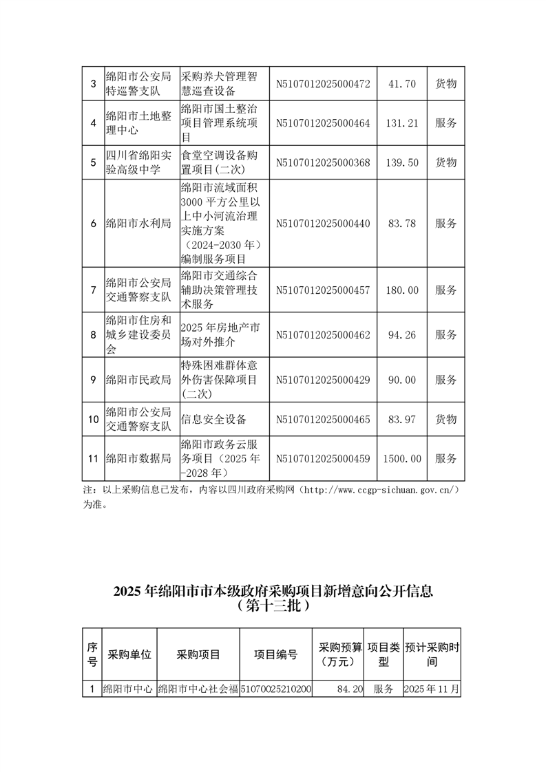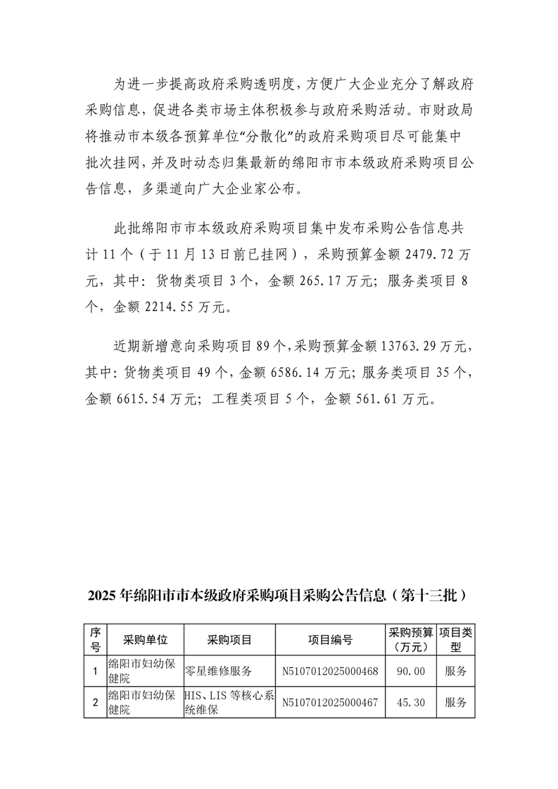 100個(gè)政府采購項(xiàng)目的“機(jī)會(huì)清單” 出爐?。?025年第十三批)綿陽市市本級(jí)政府采購項(xiàng)目信息動(dòng)態(tài)(2025年第十三波)