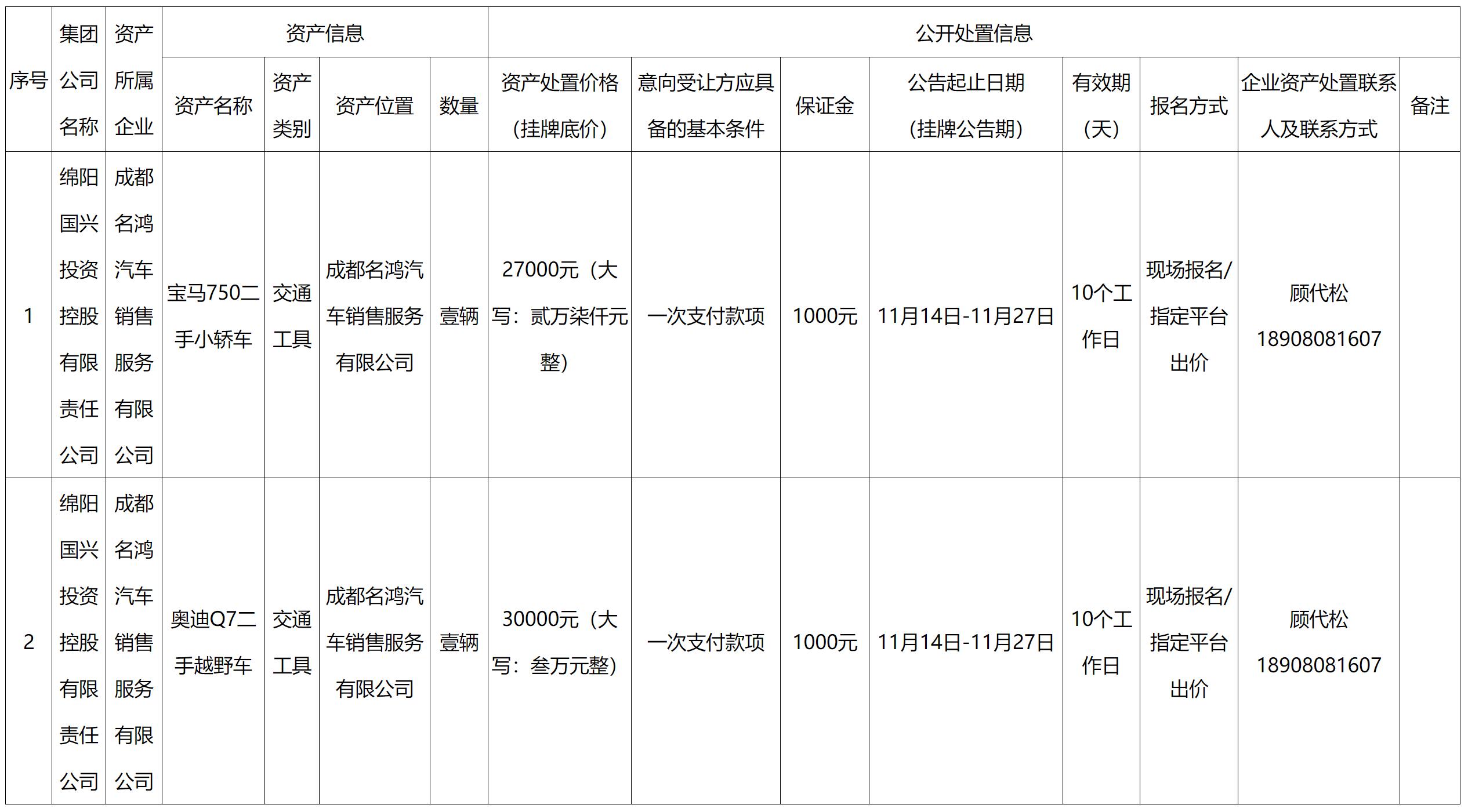 綿陽(yáng)國(guó)興投資控股有限責(zé)任公司資產(chǎn)處置公告