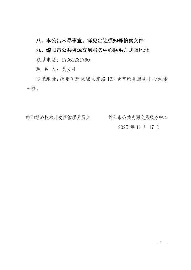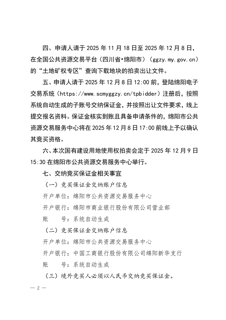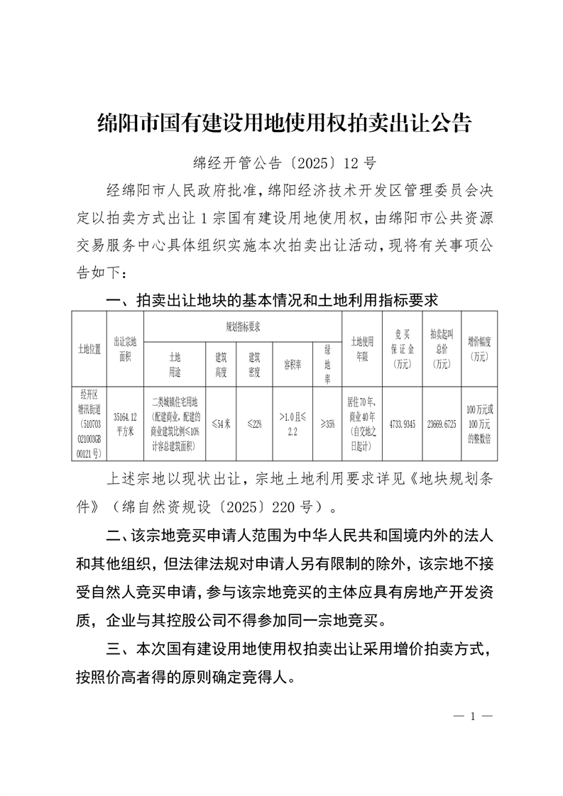 綿陽市國有建設用地使用權拍賣出讓公告(綿經(jīng)開管公告〔2025〕12號)