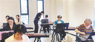 老年人在創(chuàng)業(yè)園街道老年大學學習古箏。孫麗 攝