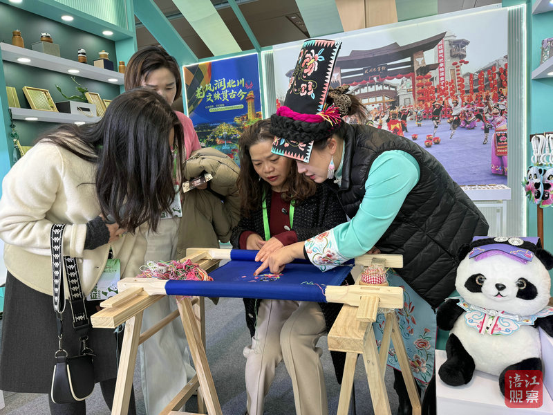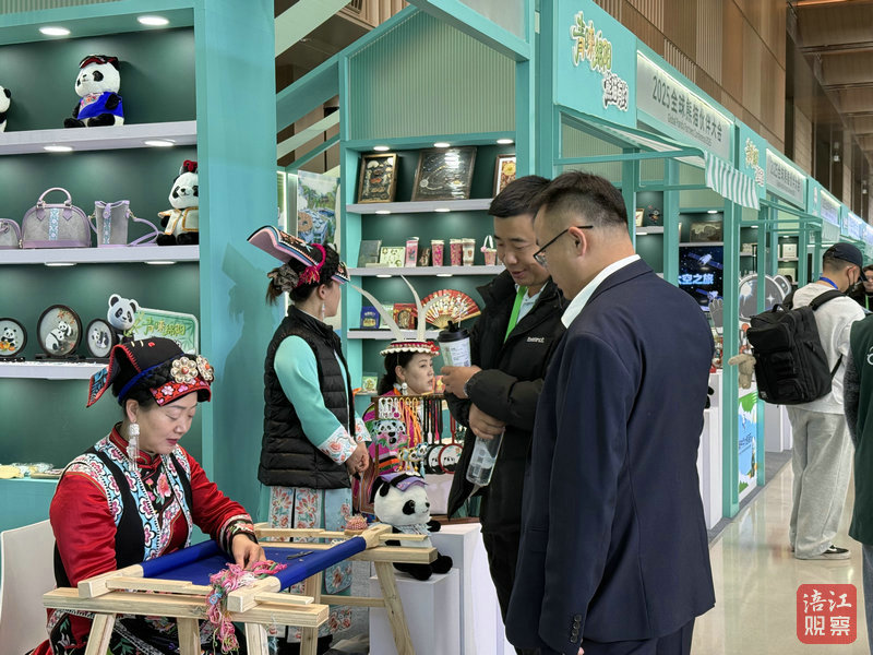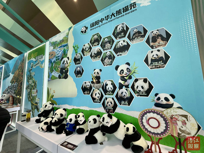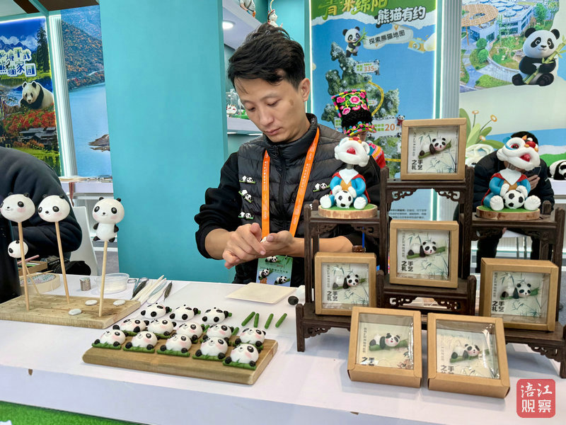 在展區(qū)一側(cè),綿陽以“青睞綿陽 熊貓有約”文旅品牌為主題,共設(shè)置了綿陽中華大熊貓苑、平武、北川三個展位,攜非遺項(xiàng)目活態(tài)展演和200多件文創(chuàng)產(chǎn)品亮相。從剪紙到羌繡,從面塑到草編,從手辦到潮玩,創(chuàng)意無窮的熊貓形象,充分展示了綿陽對熊貓IP的無限想象力,現(xiàn)場氣氛熱烈,吸引眾多國內(nèi)外嘉賓駐足參觀。
