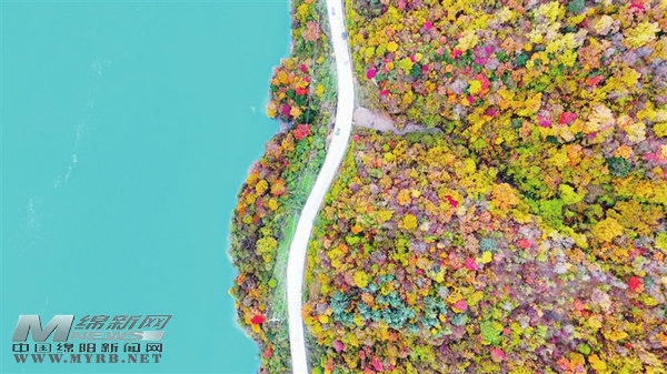 穿行于彩林之中的九綿高速。 記者 任露瀟 攝