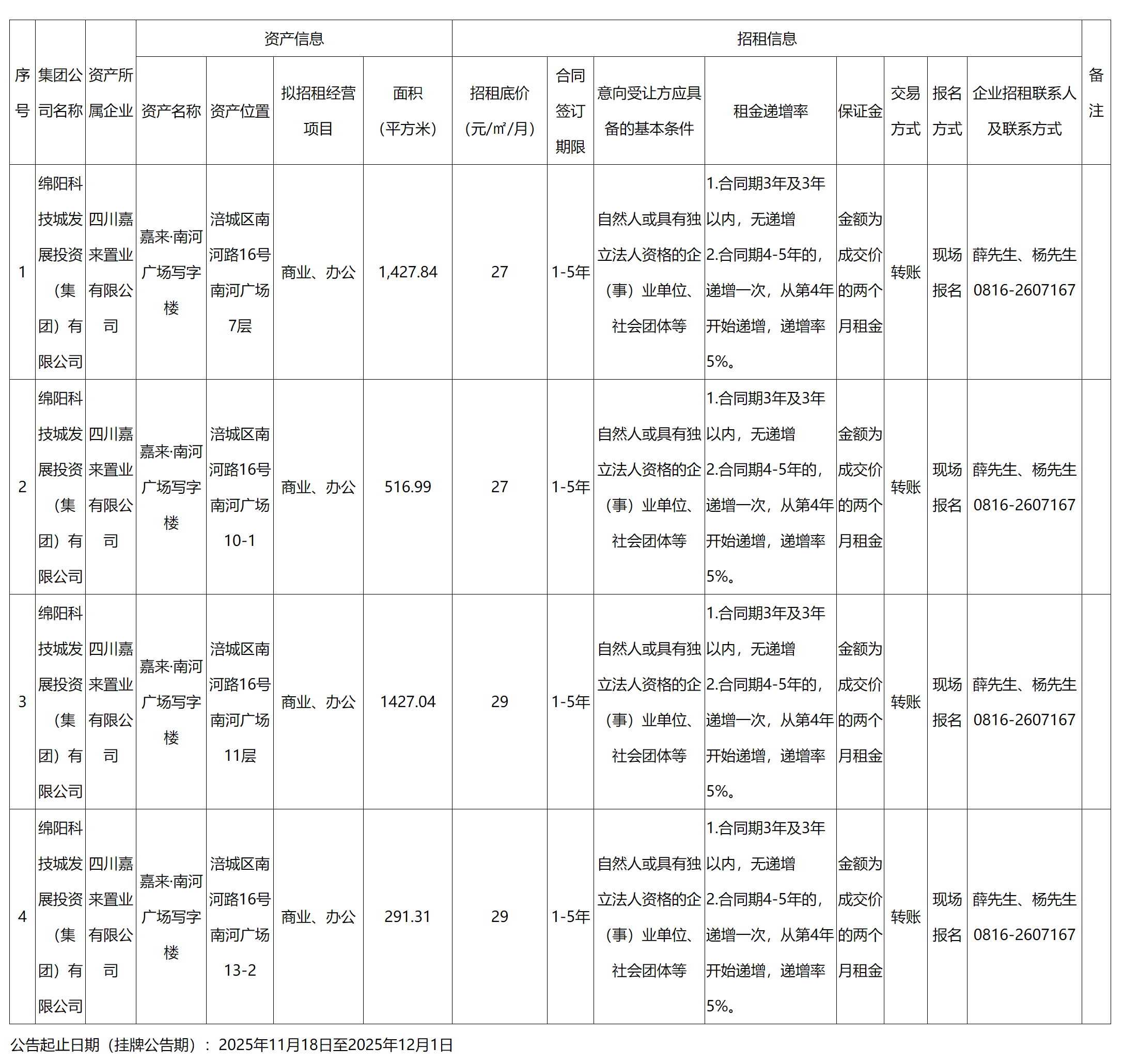 四川嘉來(lái)置業(yè)有限公司資產(chǎn)出租公告