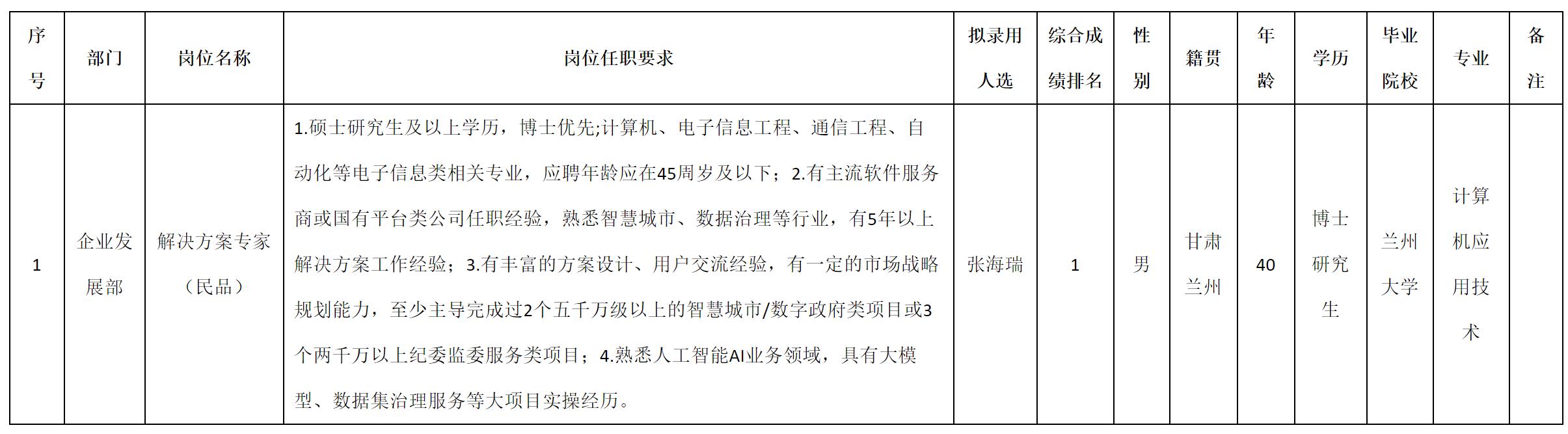 根據(jù)四川九洲投資控股集團(tuán)有限公司軟件與數(shù)據(jù)智能軍團(tuán)發(fā)布的招聘公告及招聘相關(guān)規(guī)定,經(jīng)測(cè)試、考察、體檢等程序,擬錄用張海瑞同志到四川九洲投資控股集團(tuán)有限公司軟件與數(shù)據(jù)智能軍團(tuán)工作,現(xiàn)予以公示,具體情況如下:
