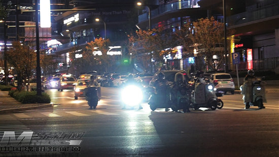 除了鄉(xiāng)間道路,城區(qū)道路上也不難發(fā)現(xiàn)加裝遠(yuǎn)光燈的電動自行車。有的燈光亮度尚可接受,有的異常刺眼,亮度甚至超過并行的汽車大燈。