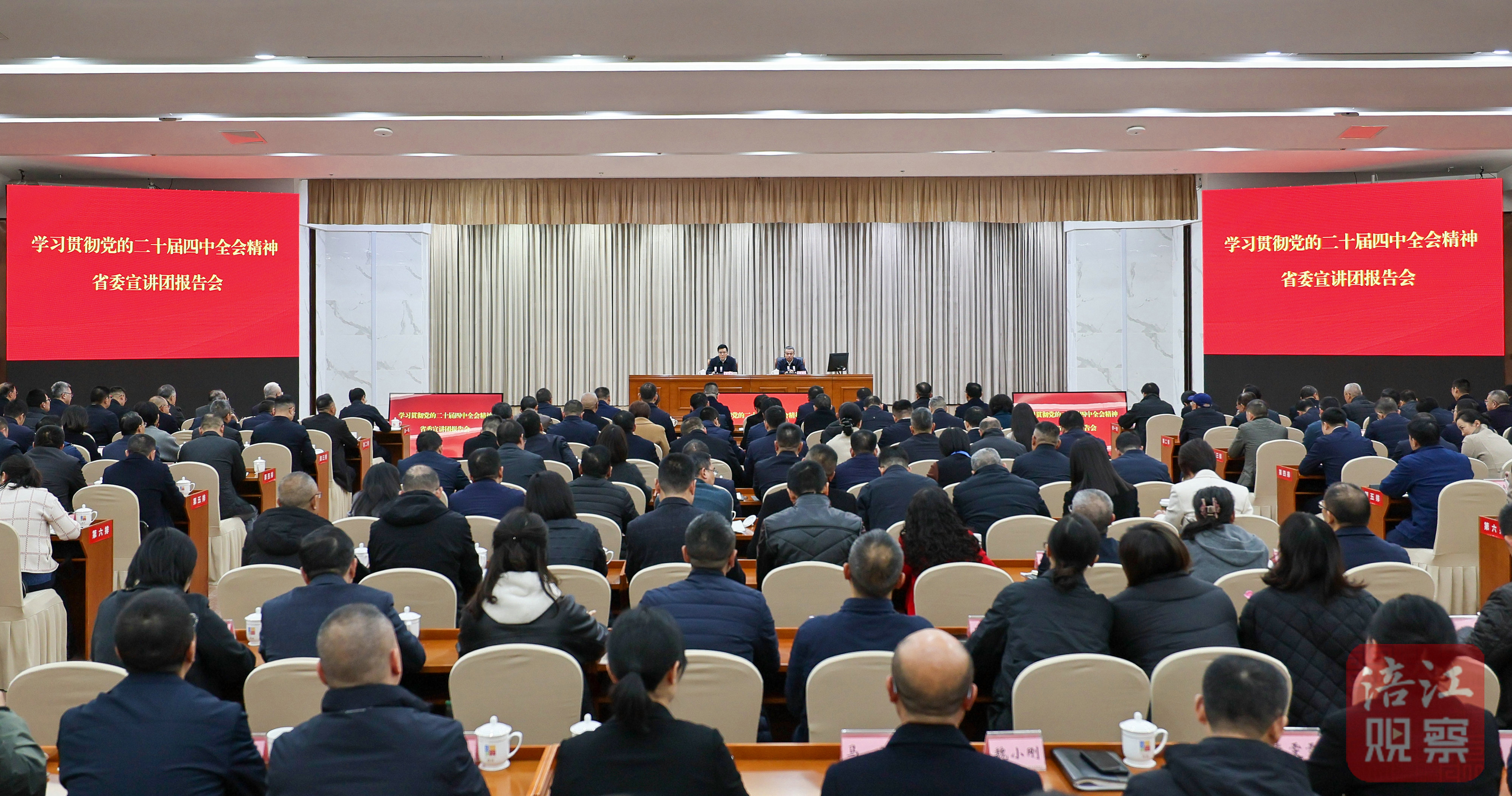 根據(jù)省委統(tǒng)一部署,12月3日,學(xué)習(xí)貫徹黨的二十屆四中全會(huì)精神省委宣講團(tuán)報(bào)告會(huì)舉行。省委常委、市委書記左永祥主持報(bào)告會(huì)。省委宣講團(tuán)第九分團(tuán)負(fù)責(zé)人,省商務(wù)廳黨組書記、廳長惠朝旭作宣講報(bào)告。市委副書記、市長李云,市人大常委會(huì)主任唐浪生,市政協(xié)主席李亞蓮,市委副書記、政法委書記莫懷學(xué),市委常委、科技城管委會(huì)主任鄭志恒參加。