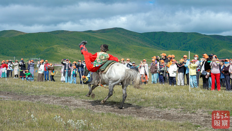 游客在紅原非遺馬術(shù)文旅體驗(yàn)基地觀看馬術(shù)表演。