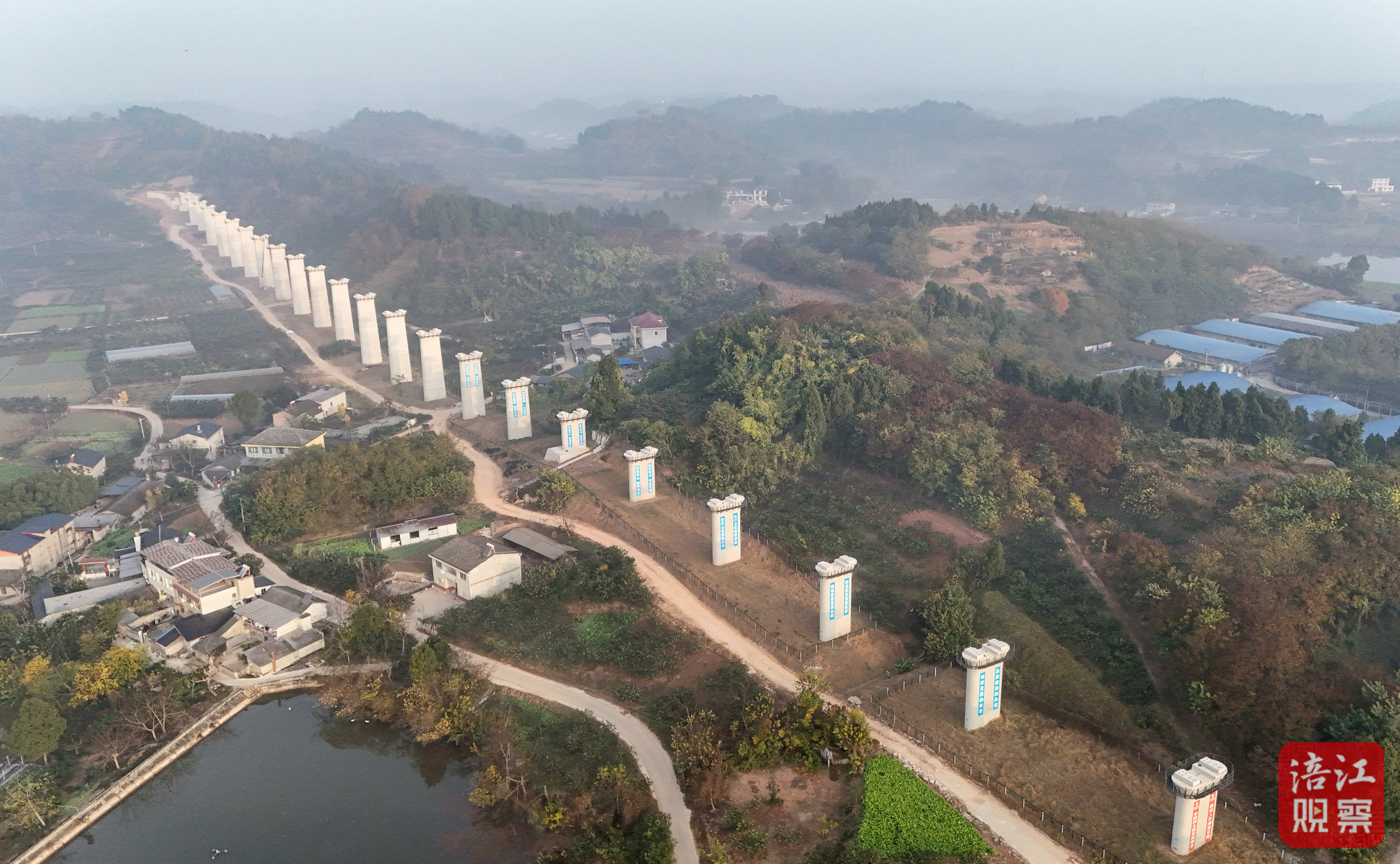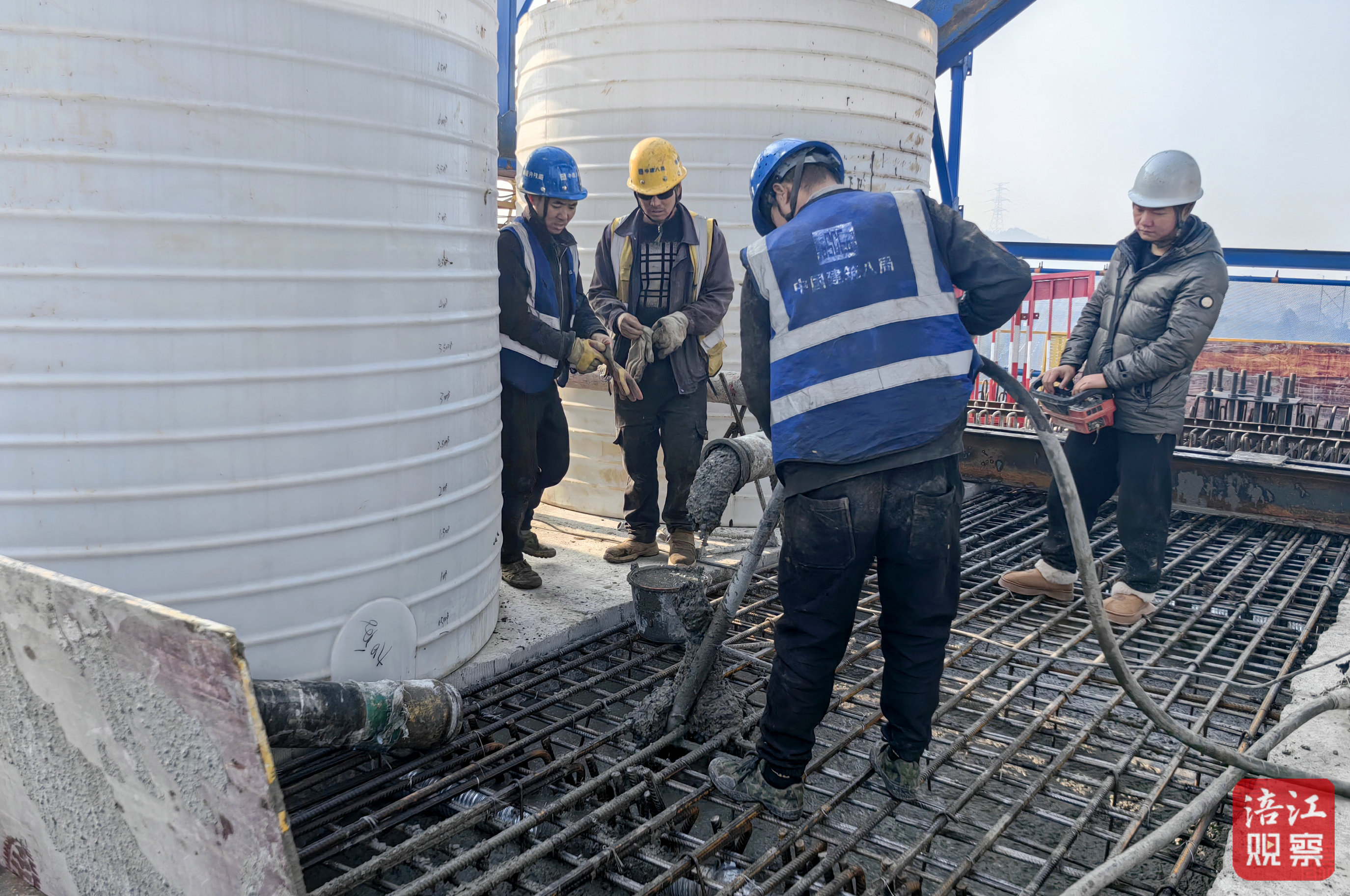 在陽光映照下,這座以75度夾角凌空跨越漢蓉高速公路的“鋼鐵長虹”圓滿接駁,下方高速公路車流如織,施工區(qū)域全封閉的菱形掛籃如一道堅固屏障,守護著“橋上施工、橋下行車”的并行安全。這標志著全線首座跨高速公路連續(xù)梁成功貫通,項目建設取得重大階段性進展。