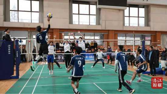 比賽現(xiàn)場(chǎng)氣氛熱烈,各隊(duì)展開(kāi)激烈角逐。運(yùn)動(dòng)員們?nèi)耐度?,扣殺、攔網(wǎng)、撲救等精彩場(chǎng)面不斷出現(xiàn)。大家始終保持積極拼搏的姿態(tài),得分時(shí)共同歡呼,失誤時(shí)彼此鼓勵(lì),展現(xiàn)出良好的團(tuán)隊(duì)協(xié)作與體育精神。
