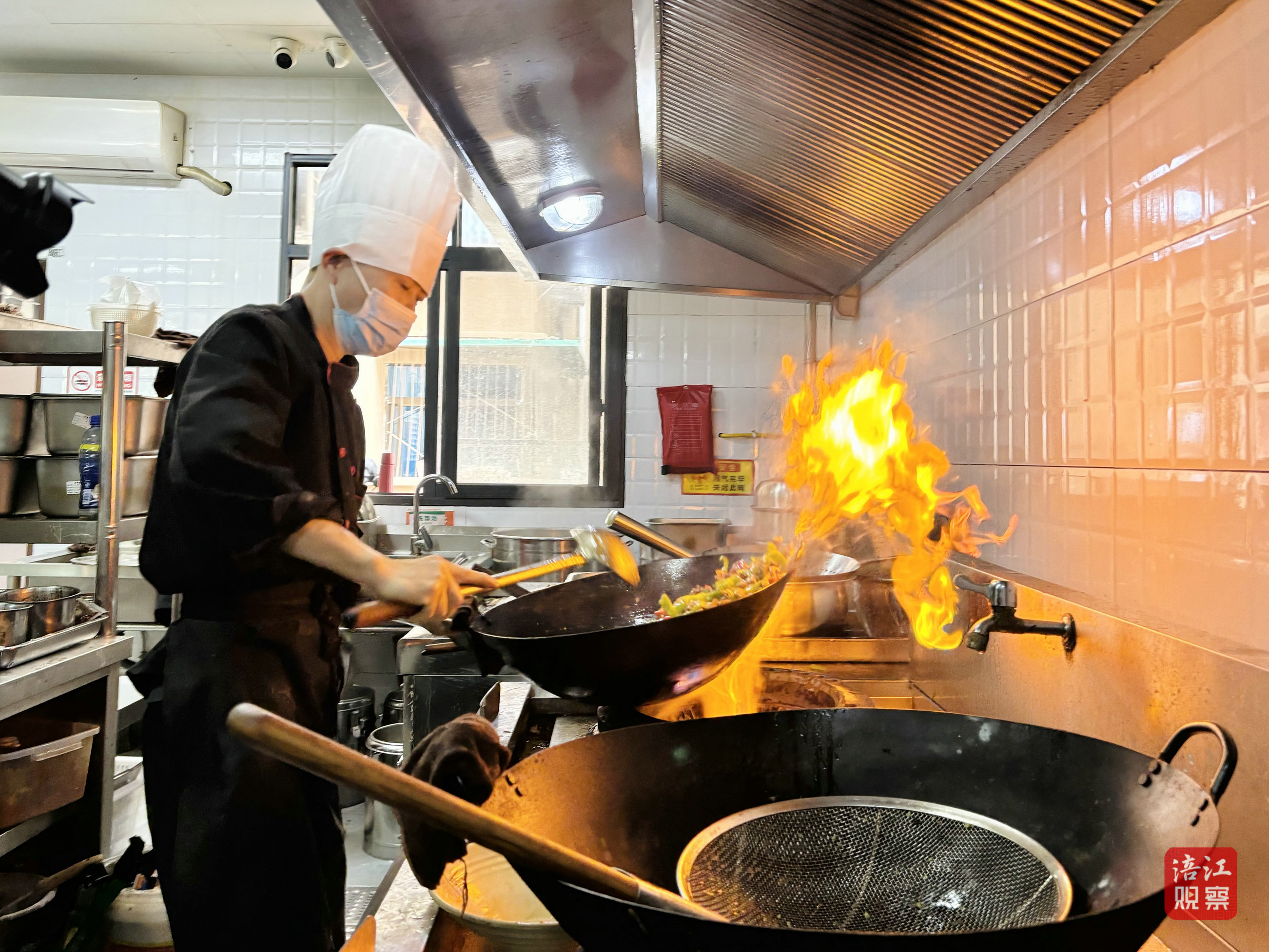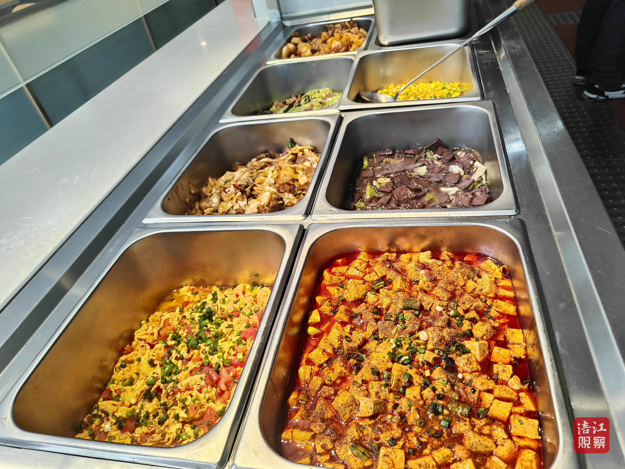 不一會(huì)兒,蒸燒白、燒排骨、西紅柿炒蛋等菜品陸續(xù)出鍋。11時(shí)30分,不少老人踩點(diǎn)趕“飯”。94歲老人劉權(quán)在智能識(shí)別機(jī)上刷社區(qū)為其辦的就餐卡,顯示免費(fèi)。選好菜后,工作人員幫老人將飯菜端上桌,老人便津津有味地吃著。
