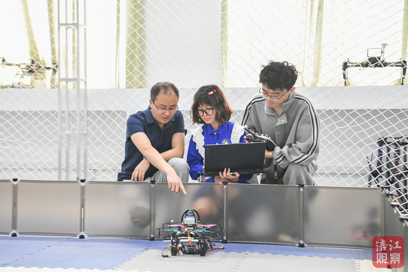 另一邊,在特殊環(huán)境機(jī)器?技術(shù)四川省重點(diǎn)實(shí)驗(yàn)室的動(dòng)捕實(shí)驗(yàn)室內(nèi),研究人員霍建文正與西南科技大學(xué)通信專(zhuān)業(yè)大三學(xué)生張?chǎng)卧抡{(diào)試飛控算法,旁邊的隊(duì)友正在模擬器里驗(yàn)證路徑規(guī)劃模型,搭載了“異構(gòu)飛控智航系統(tǒng)”的無(wú)人機(jī)再次迎來(lái)了試飛。