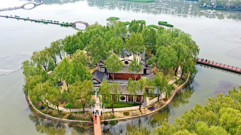 坐落于白洋淀荷花大觀園的荷花淀派文學(xué)館(無人機照片)。(雄安新區(qū)宣傳網(wǎng)信局供圖)