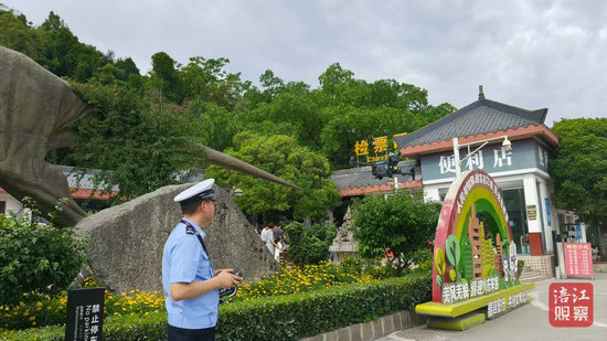 ?。翟拢橙?,在尋龍山景區(qū)上空傳來(lái)清亮的提示音:“前方路口車(chē)流密集,請(qǐng)游客有序通行。”一架配備高清攝像頭和擴(kuò)音設(shè)備的警用無(wú)人機(jī),正在執(zhí)行空中巡航任務(wù)。