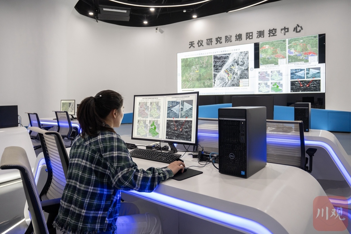 綿陽(yáng)天儀空間科技有限公司內(nèi),工作人員正在通過(guò)衛(wèi)星圖像進(jìn)行地質(zhì)監(jiān)測(cè)。 攝影/趙明