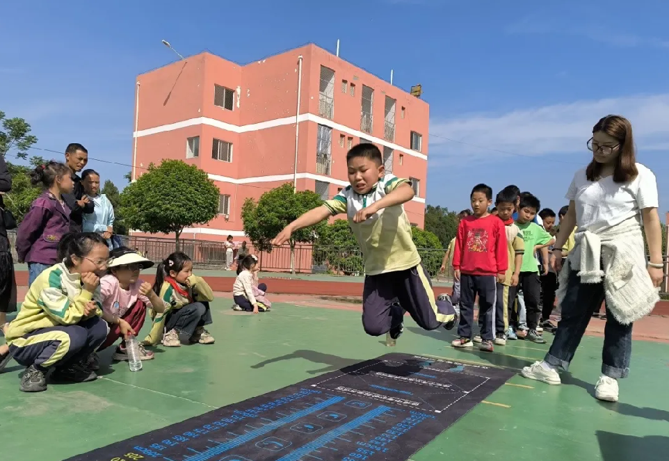 沙包擲遠項目中,小運動員們奮力一擲,沙包劃出優(yōu)美的弧線;后拋實心球考驗著選手們的爆發(fā)力;立定跳遠場地,運動員們?nèi)绯C健的羚羊騰空而起;一分鐘跳繩區(qū)域,彩繩飛舞,計數(shù)聲此起彼伏。