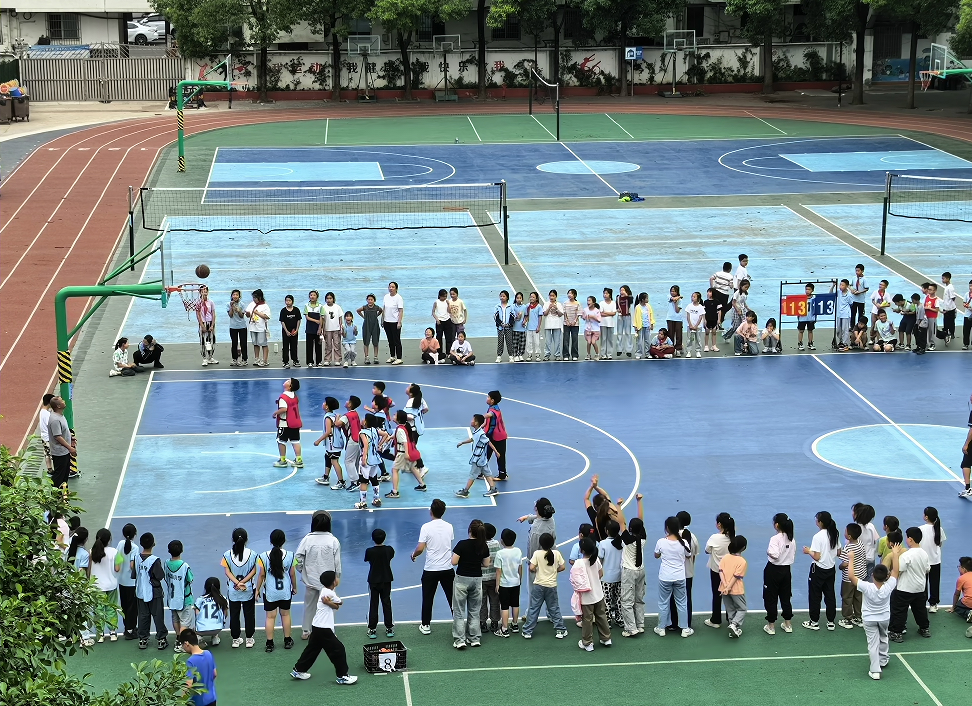 三年級和四年級的籃球小將們步伐輕盈而矯健,眼神中透著堅定與自信。籃球在他們的指尖靈活跳動,仿佛被賦予了生命。有的球員憑借敏捷的身手,如閃電般突破對手的防線;有的高高躍起,在空中劃出一道優(yōu)美的弧線后,籃球精準入網,引得現(xiàn)場觀眾歡呼連連。