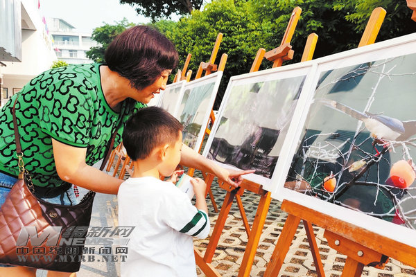 參觀者參與看布藝作品猜成語活動(dòng)