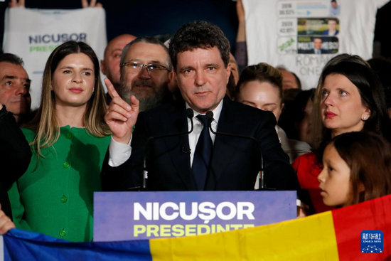 5月18日,在羅馬尼亞布加勒斯特,獨(dú)立候選人、布加勒斯特市長(zhǎng)尼庫(kù)紹爾·達(dá)恩在總統(tǒng)選舉第一次投票后發(fā)表講話。新華社發(fā)(克里斯泰爾攝)