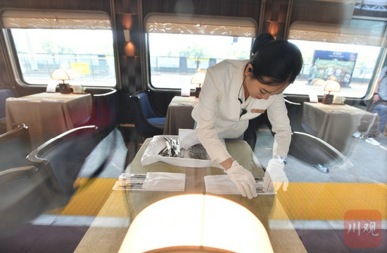 據(jù)了解,“成都號(hào)”定位為“深度游+場景體驗(yàn)”專列旅游產(chǎn)品,每車配備18名熊貓管家和6名度假大使。其中,熊貓管家將為游客提供24小時(shí)高星級(jí)酒店管家式服務(wù),從引領(lǐng)入住到功能介紹,從安全守護(hù)到沿線風(fēng)光推介,覆蓋游客全維度需求。“除了日常服務(wù)外,旅途中,我們還會(huì)定期開展川劇變臉、調(diào)酒、民族歌舞、茶藝等特色表演,以及非遺手作、旅拍沙龍、星空頂KTV、影音劇場等互動(dòng)活動(dòng)。”熊貓管家廖乾蘭說。