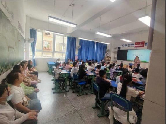 教室后排,家長(zhǎng)們的目光比陽光更熾熱。