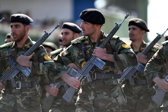 2025年4月18日,在伊朗首都德黑蘭,士兵們在閱兵式上列隊行進。伊朗18日舉行建軍節(jié)閱兵式。新華社記者 沙達(dá)提 攝